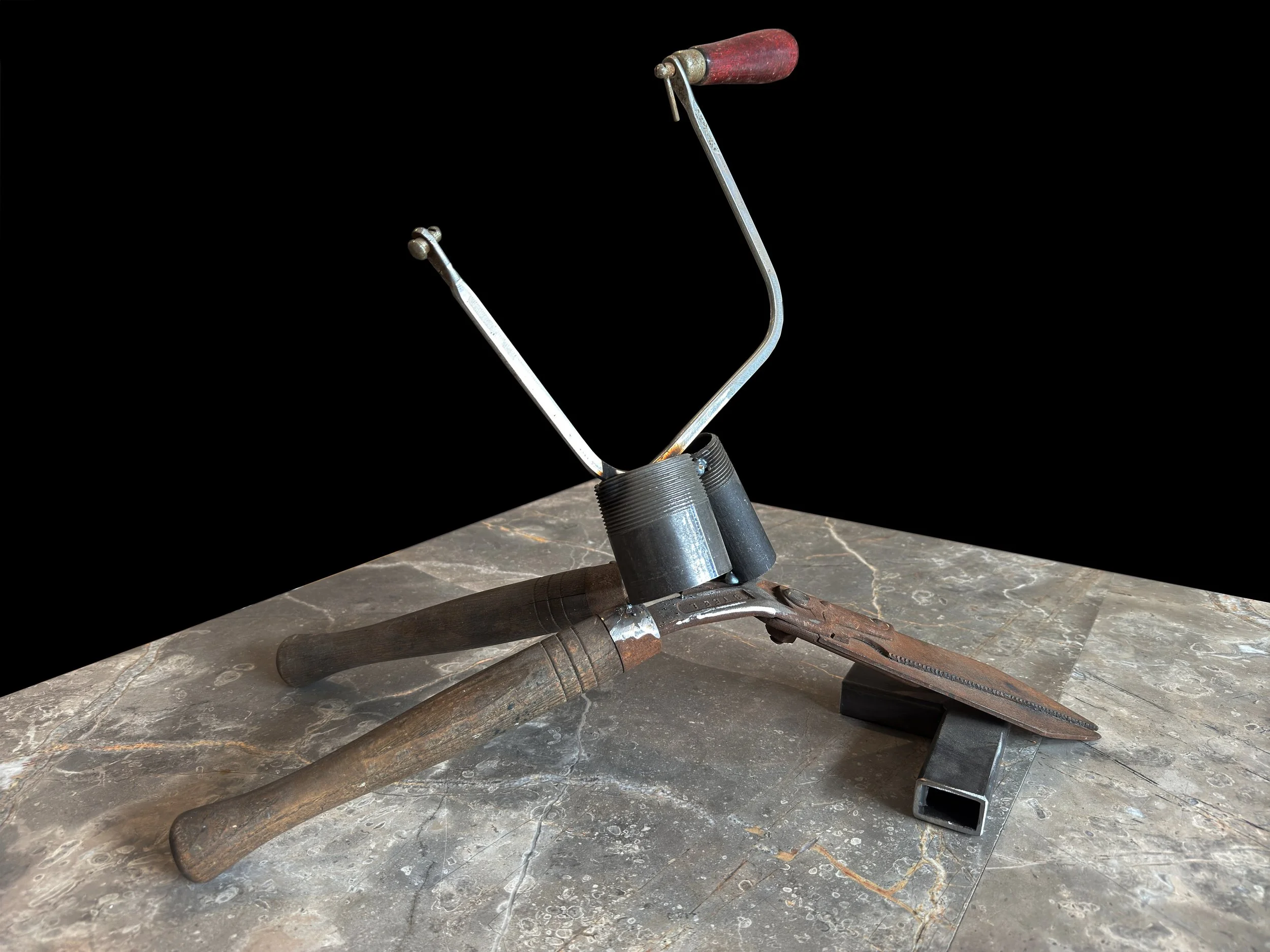 ASSEMBLAGE: Scrap steel, Dad’s Wood Handle Coping Saw + Garden Hedge Shears